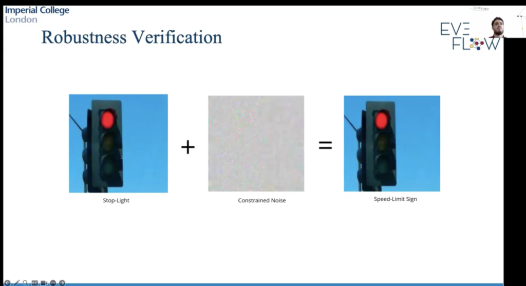 The presenters demonstrated how the tool can verify model reliability and robustness across different scenarios, such as navigation and planning for automated guided vehicles (AGVs). The tool contributes to ensuring safe and dependable AI deployments in industrial environments.